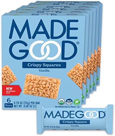 Amazon Com Made Good Vanilla Crispy Squares 6 Pack 36 Count Crunchy Rice With Smooth Rich Vanilla Contains Nutrients Of One Full Serving Of Vegetables Gluten Free Nut Free Organic Vegan Non Gmo Treat